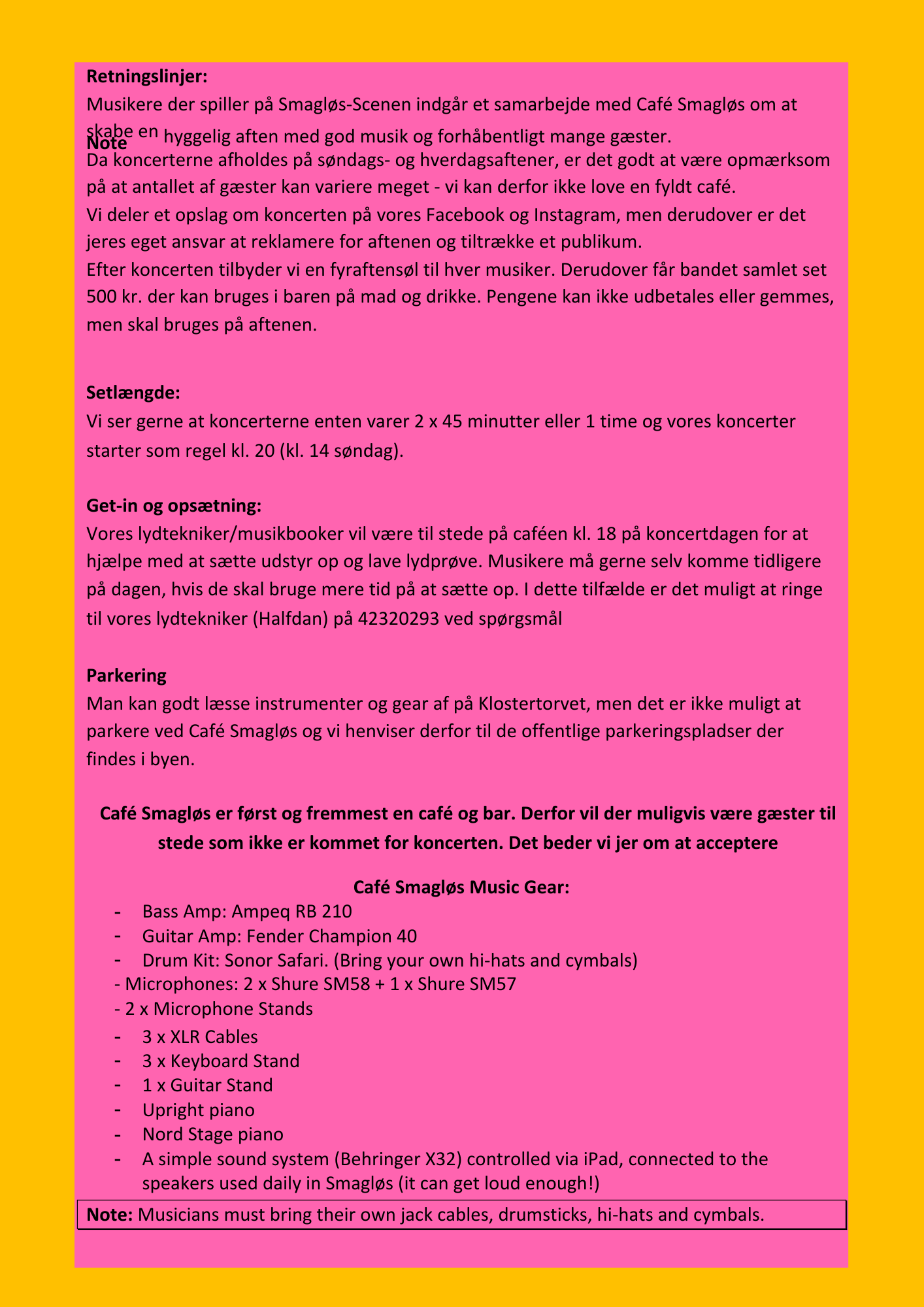 Skriv en mail til musik@cafesmagloes.dk og hør nærmere